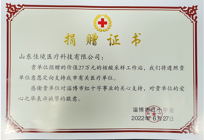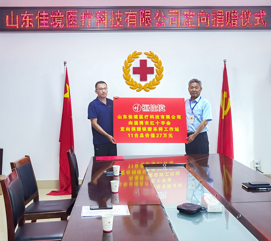 6月27日下午,山東佳境醫(yī)療科技有限公司向淄博市紅十字會捐贈用于抗擊新冠病毒的核酸采樣工作站11臺,總價值27萬元,支援我市疫情的防控工作。淄博市紅十字會二級調(diào)研員劉永鋒、佳境醫(yī)療董事長鐘文泉先生出席捐贈活動。劉永鋒表示:“非常感謝佳境醫(yī)療的無私捐贈,這是一次積極向上、回報社會的愛心行動,對廣大企業(yè)積極參與抗擊疫情、履行社會責(zé)任將起到示范作用。鐘文泉表示:“臨近七一建黨節(jié),作為一名黨員,一定要響應(yīng)黨和政府的號召,盡自己的綿薄之力,向所有抗疫一線的醫(yī)護(hù)人員表示敬意”。